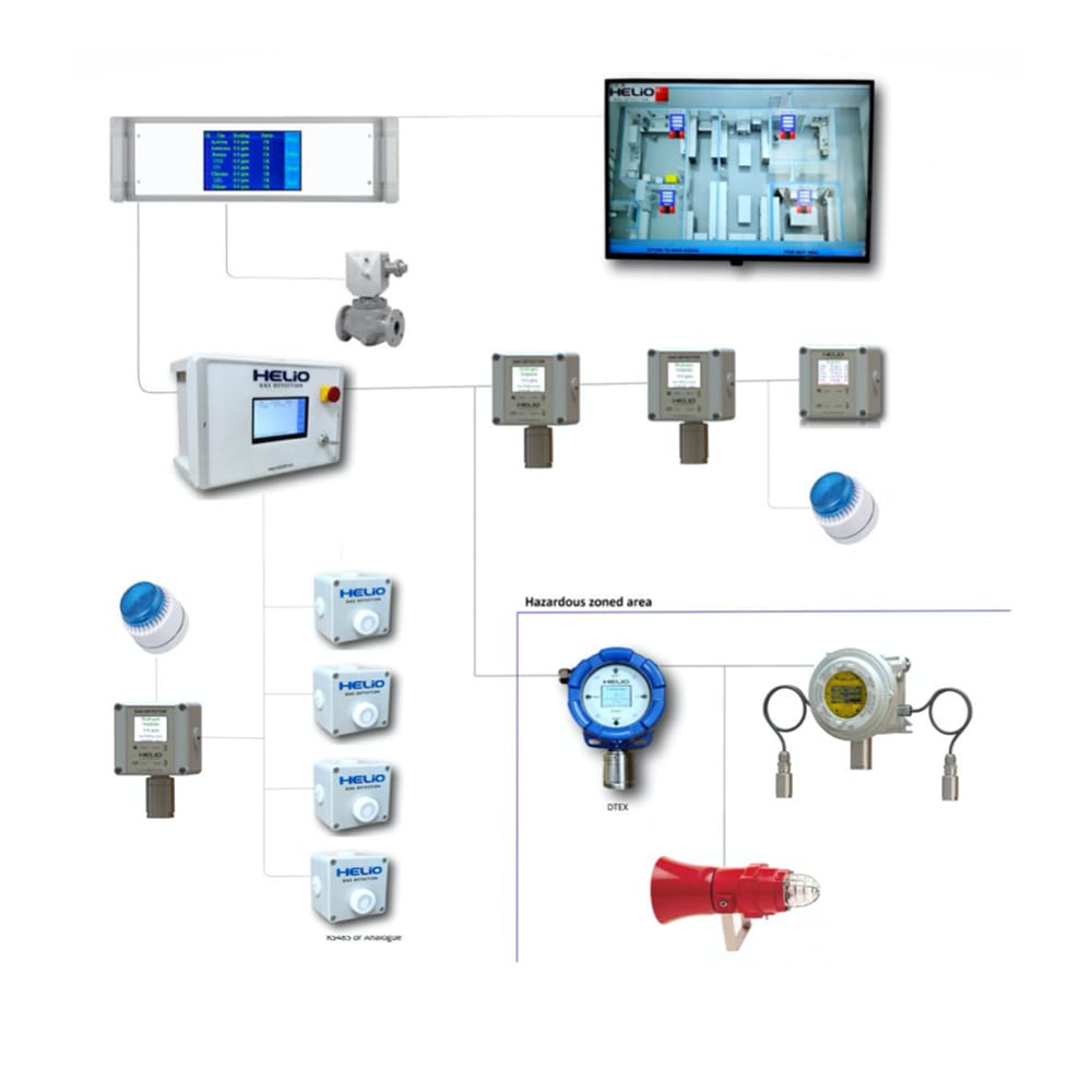 - Up to 64 analogue Inputs with expansion Up to 64 analogue Outputs with expansion 8 Volt free relay outputs, expandable to 72 Visual indication of gas levels, status and location.